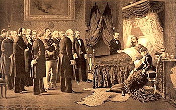 Les derniers moments de Victor-Emmanuel II de Savoie, lithographie de Ettore Ximenes, v. 1878