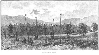 Bunkeya, capitale de Msiri, fortifiée de palissades