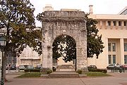 Les historiens s'accordent à dire qu'Aix est née de ses sources d'eau à l'époque romaine, sur les restes d'un habitat celtique. Les premières occupations du site ont été datées par Alain Canal[25] du premier siècle avant notre ère, cependant rien ne permet d'attribuer ces vestiges à un habitat fixe. Il ne nous reste que les ruines d'établissements publics et on serait bien en peine d'établir une esquisse de «l'Aquæ» antique. La situation administrative du lieu est connue par l'épigraphie, qui nous apprend qu'Aix était au Ier siècle de notre ère un «vicus», pourvu d'un conseil de «decemlecti» (conseil municipal de dix membres) [26], faisant administrativement parti de la cité de Vienne. Quelques citoyens vivaient là avec, semble-t-il, des moyens assez importants pour offrir aux dieux un bois sacré, une vigne ou se faire construire un arc funéraire pour le cas de la famille des Campanii.