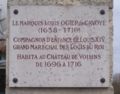 Plaque commémorative de Louis Oger de Cavoye à l'entrée du château de Voisins  |