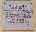 Plaque commémorative d'Arnold de Ville à l'entrée du Pavillon des Eaux, chemin de la Machine au village de Voisins  |