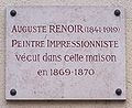 Plaque commémorative d'Auguste Renoir au 9 de la place Ernest Dreux dans le village de Voisins  |