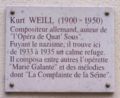 Plaque commémorative de Kurt Weill au 9 bis de la place Ernest Dreux dans le village de Voisins  |