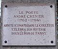 Plaque commémorative d'André Chénier à l'entrée du château de Voisins  |