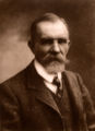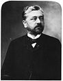 «C'est un homme de 42 ans, grand, mais légèrement voûté déjà, comme ces cariatides qui portent des balcons sur leurs épaules. Sa tête forte, véritable hure de lion, secouait par instants une chevelure ardente, qui lui faisait une véritable crinière. Une face courte, large aux tempes, agrémentée d'une moustache hérissée comme les barbes d'un chat et de petits bouquets légèrement égarés, un regard myope, complémentaient cette physionomie éminemment féline.»